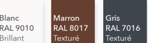 – Toile grise en fibre de verre enrobèe de PVC, résistante aux UV et imputrescible.